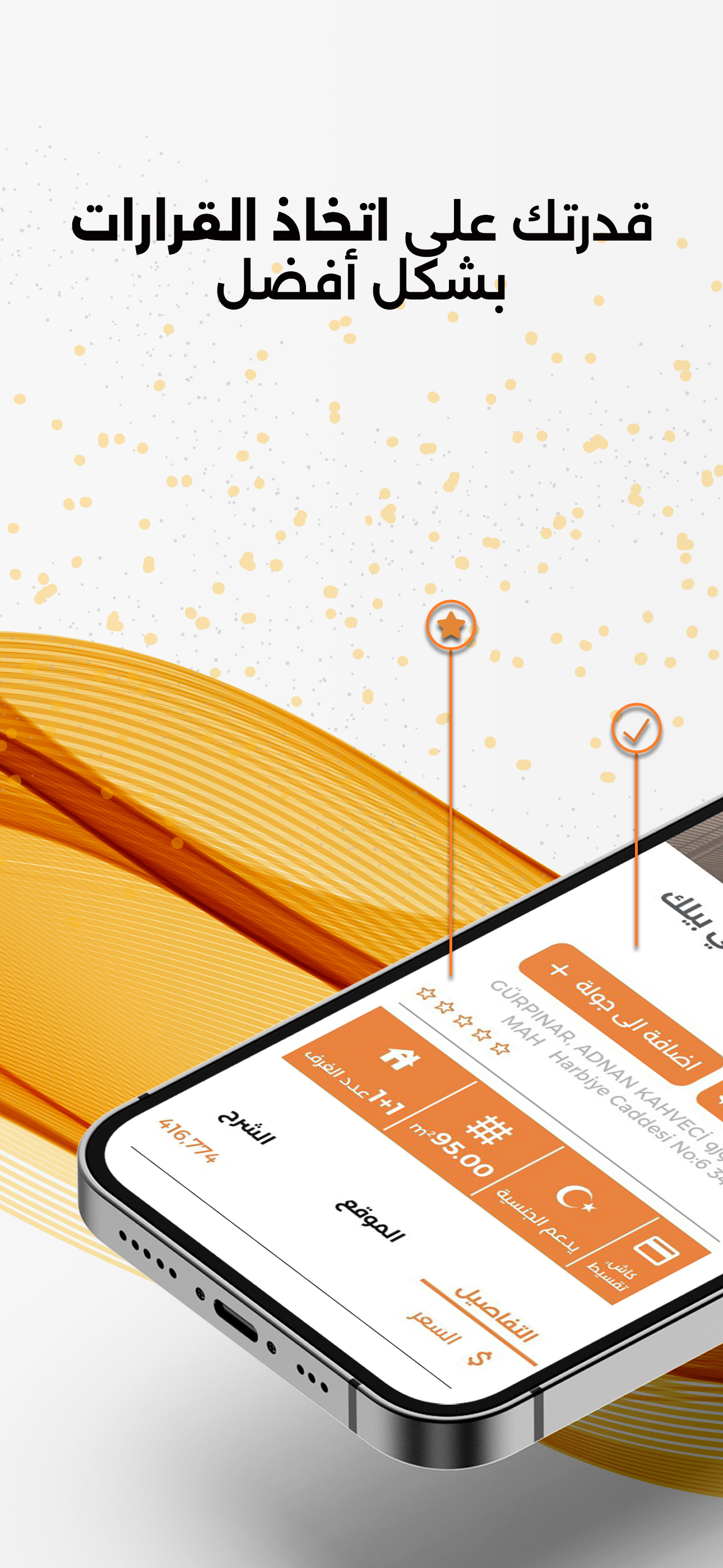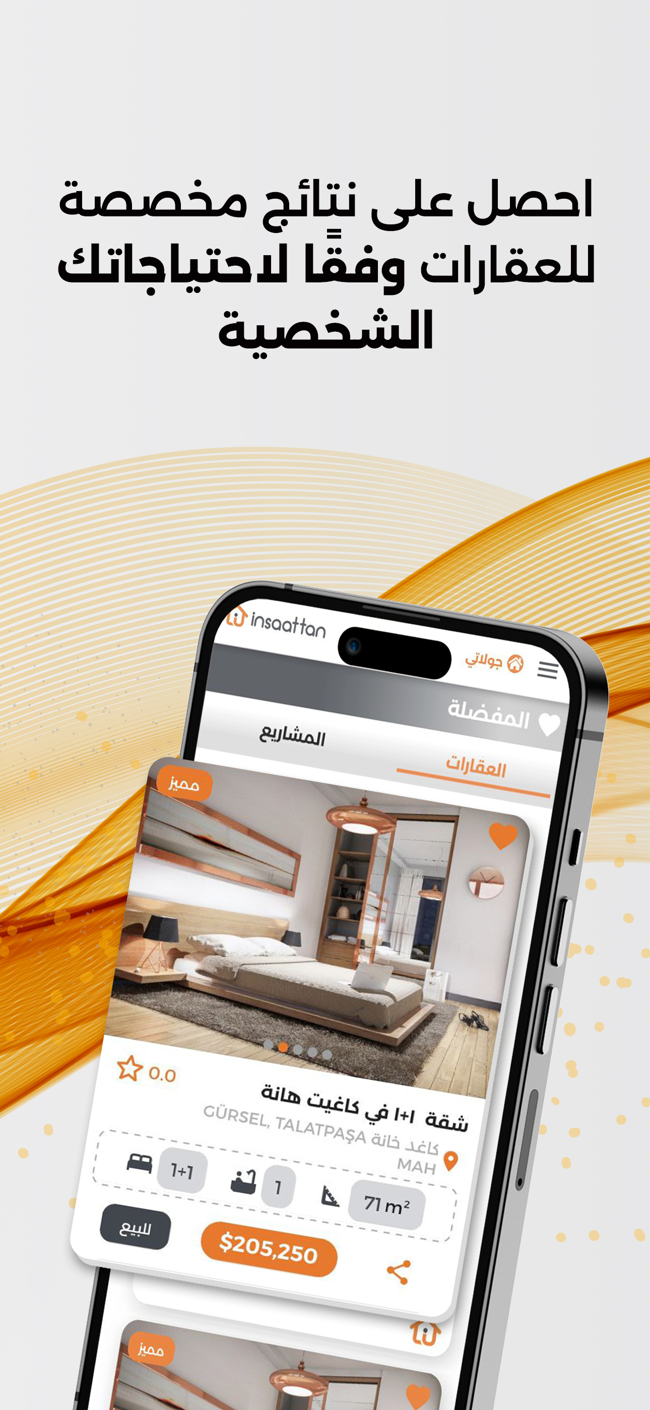 الخيار لإضافة مشروع أو عقار إلى قائمة المفضلة الخاصة بك وترتيب جولة عقارية عن طريق تحديد اليوم والوقت واستشاري العقارات الذي يتحدث نفس اللغة الخاصة بك، بالإضافة إلى ذلك، يقوم تطبيقنا بتقديم قائمة بالمنازل الفاخرة والشقق المعروضة للبيع